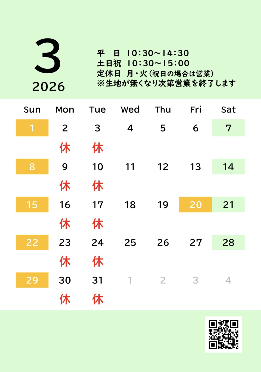 3月の営業カレンダー